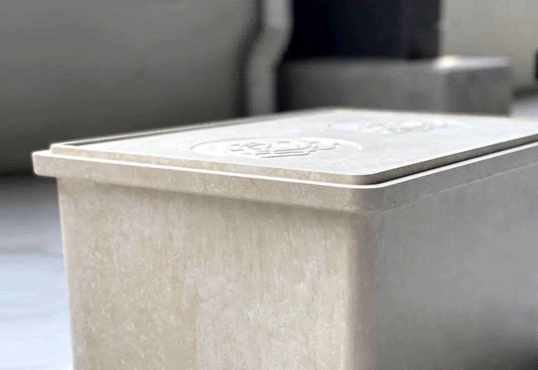 变 “废”为“材”,奠定绿色基石。 仿真石保护箱的诞生,始于对石材产业“边角料”的重新审视。通过自主研发的高分子复合技术,将花岗岩石粉与环保聚合物精准配比,经高温高压一体模压成型。这一过程,彻底跳出了“开采-加工-废弃”的线性消耗模式,构建起“废料-精品-循环”的绿色闭环,让每一克石粉都获得重生,从源头削减了对自然山体的索取。